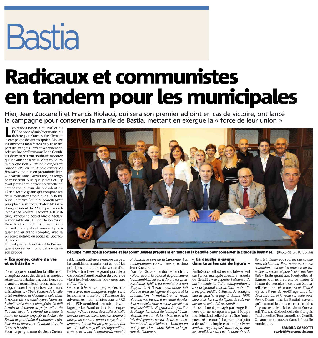 Article « Bastia : Radicaux et communistes en tandem pour les municipales » - Corse-Matin 7 novembre 2013