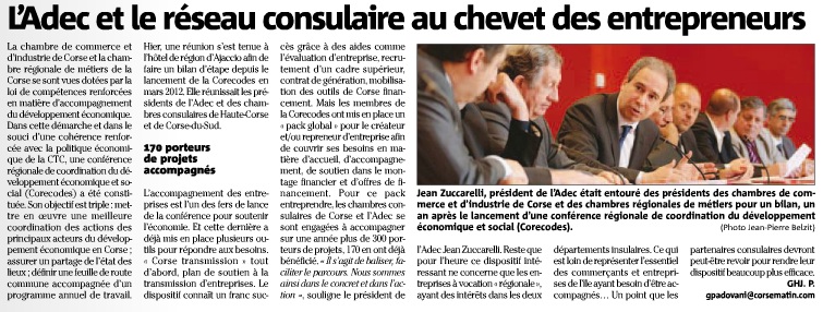 « Il s’agit, en outre, d’initier une autre façon de conduire l’action publique mais aussi afficher une forte volonté de partager, de dialoguer, d’expliquer et comprendre les politiques économiques et besoins des entreprises », a indiqué Jean Zuccarelli.