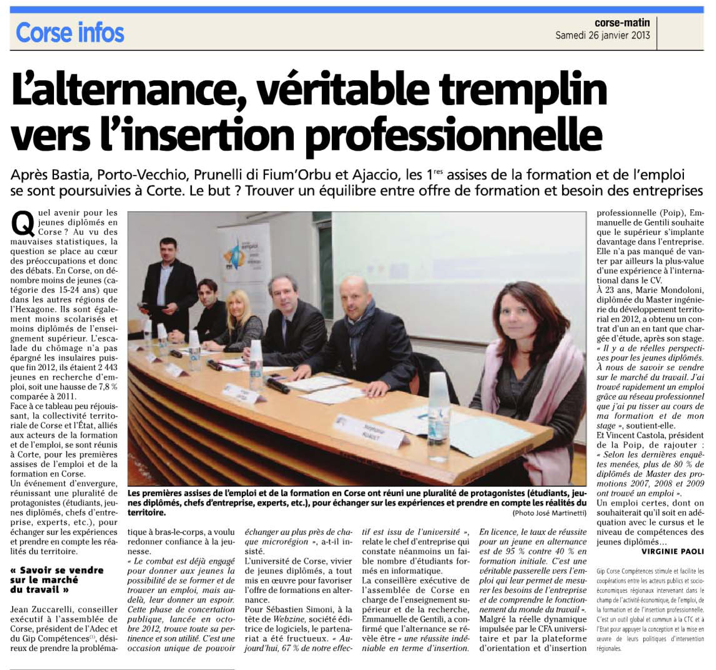 Aussi, après toute une série d’ateliers organisée aux quatre coins de l’île sur des sujets aussi importants que l’insertion professionnelle des jeunes sans qualification, l’apprentissage ou encore les mutations du monde rural, la phase de concertation publique se poursuivait en l’amphi Landry de l’Université de Corse, autour de la thématique « Quelle adéquation entre emploi et formation pour les jeunes diplômés ? ».
