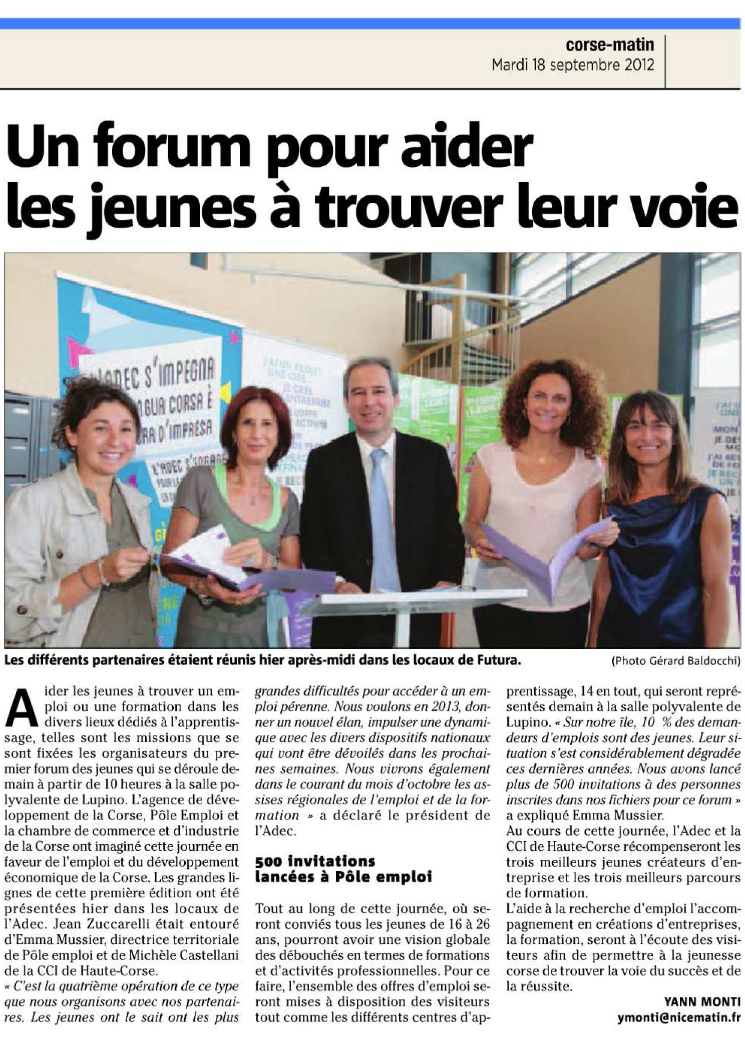 « Il s’agissait de créer un espace de rencontres et d’échanges, autour des quatre thématiques essentielles que sont l’orientation, la formation, l’alternance et la création d’activité », a notamment indiqué Jean Zuccarelli. « L’objectif consistait également à favoriser l’interaction entre les organismes spécialisés en la matière et les jeunes en quête d’une poursuite d’études, d’un stage, d’un contrat d’apprentissage ou d’une éventuelle embauche, correspondant aux aspirations et attentes de chacun quant à l’avenir ».