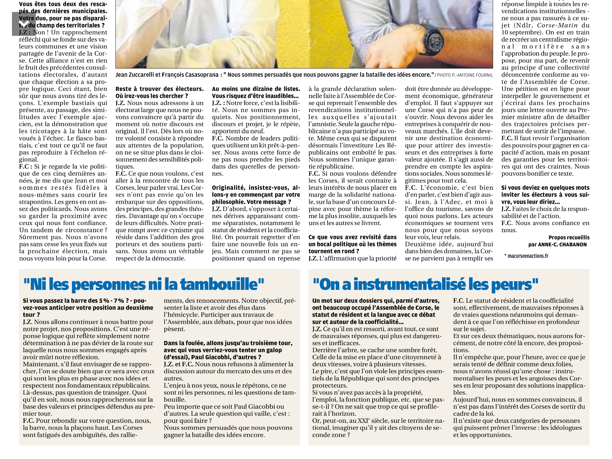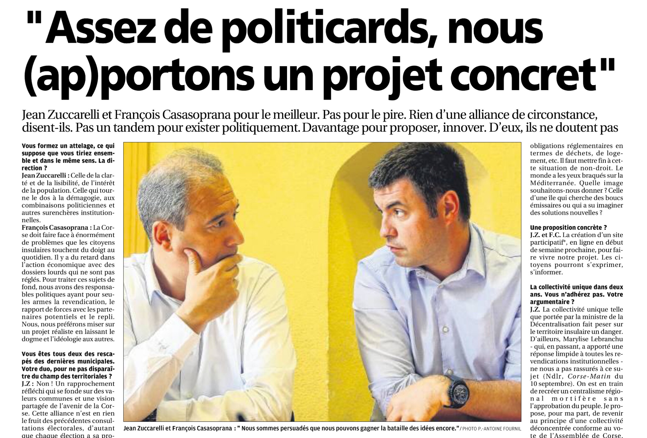 J'ai accordé avec Francis Casasoprana une interview à Anne Chabanon de Corse Matin.