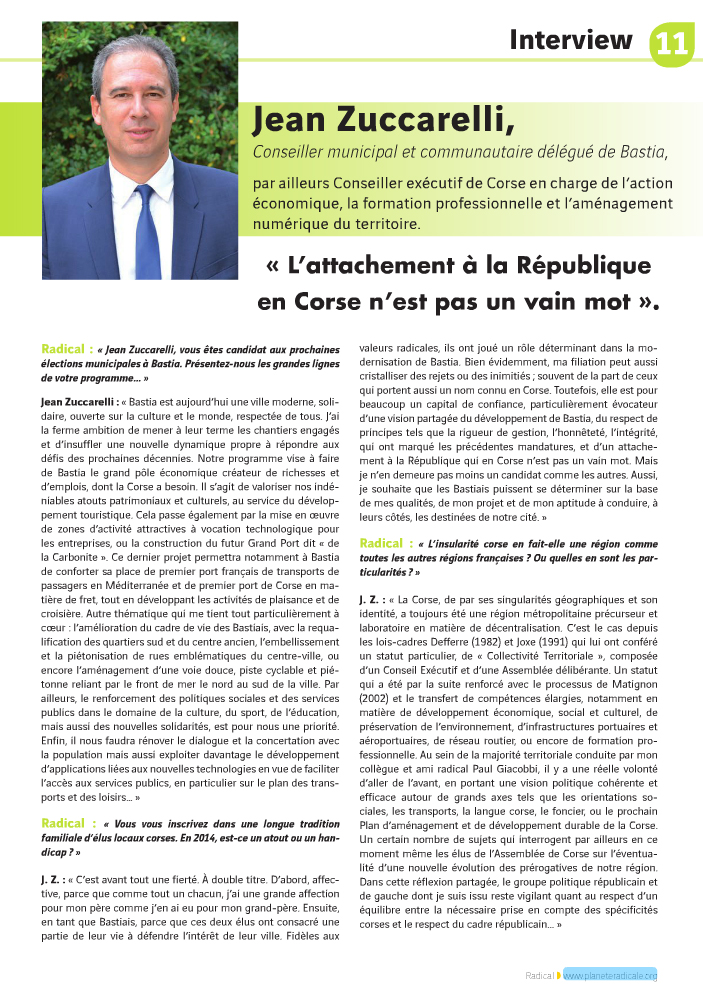 Ce mois-ci, Jean Zuccarelli répond aux questions du journal national "Radical", publication du Parti Radical de Gauche (PRG), quant à son engagement pour Bastia et plus largement pour la Corse.