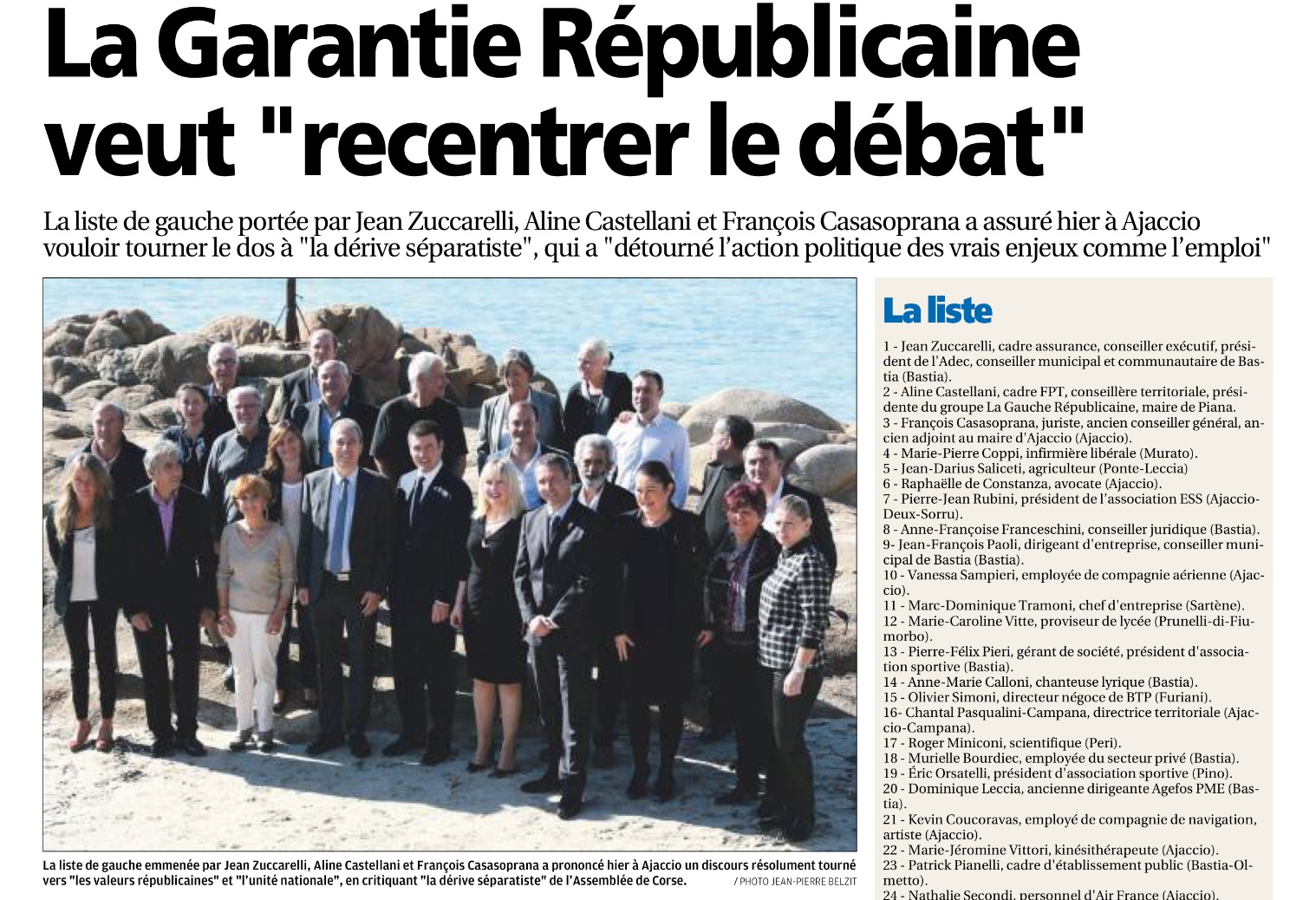 Nous l'avons nommée "La Garantie Républicaine", car c'est bien ce que nous sommes aujourd'hui les seuls à incarner ! C'est également la volonté de porter un projet concret et ambitieux, qui s'inscrit dans le cadre républicain, avec ses solidarités entre individus et entre territoires.