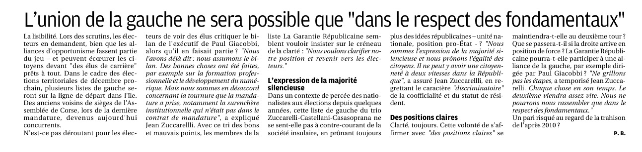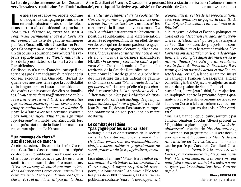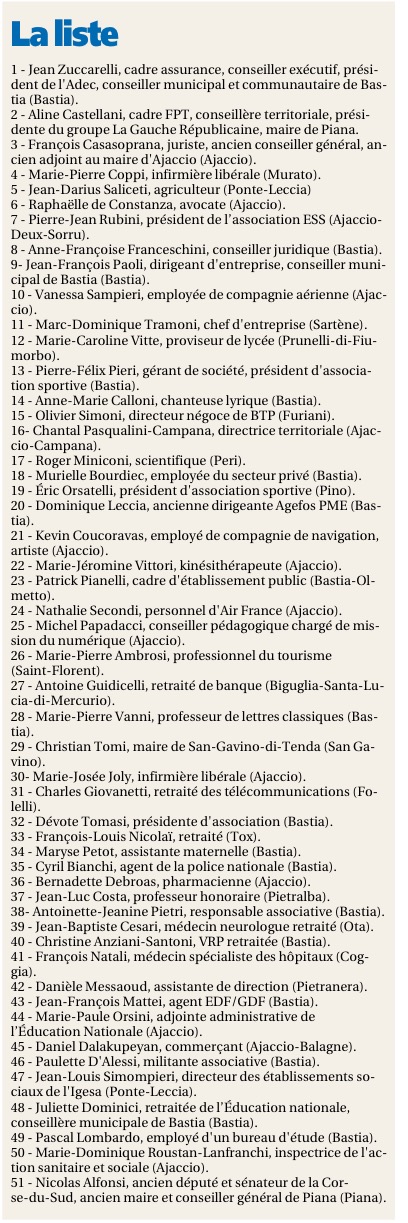 Nous étions ce dimanche matin, réunis à Ajaccio pour présenter officiellement notre liste aux élections territoriales de décembre prochain. Cette liste, c'est une étape fondamentale pour notre démarche, qui transforme notre message, nos paroles, en actes.