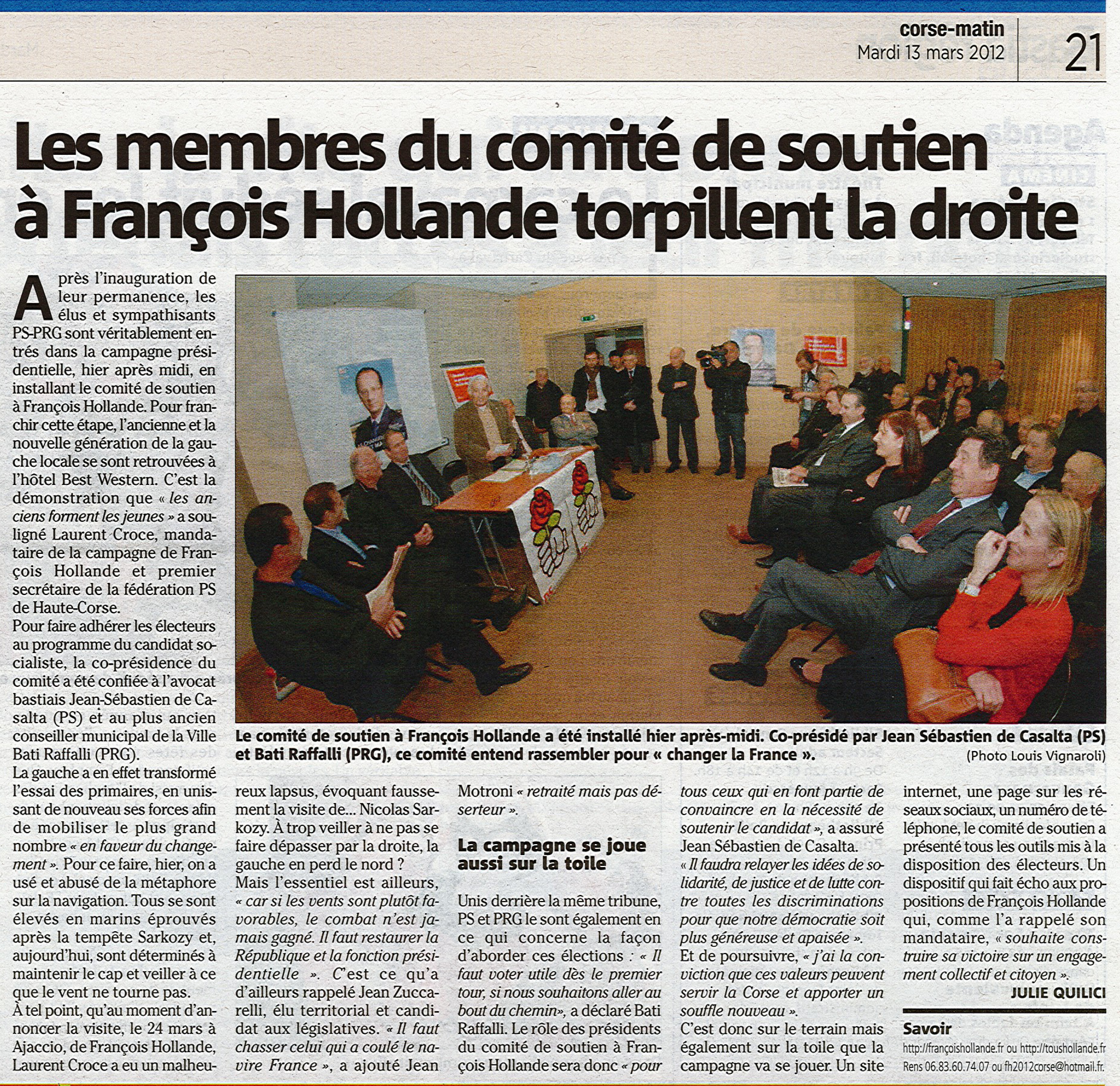 Durant la conférence de presse, ces derniers ont, tour à tour, pris la parole, aux côtés d’autres intervenants tels que Laurent Croce, premier secrétaire de la Fédération PS de Haute-Corse et mandataire de campagne pour François Hollande, Jean Zuccarelli, candidat aux législatives, sous la bannière PS/PRG, dans la circonscription de Bastia, Stéphane Vesperini, militant socialiste et conseiller municipal de Biguglia, ou encore Jean Motroni, figure politique du Cap Corse.